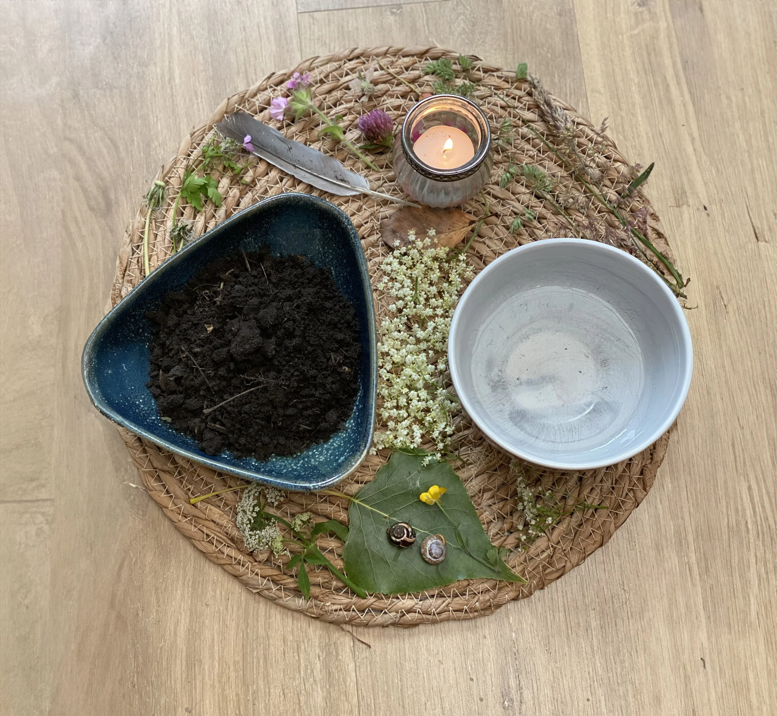 Une intention et un rituel symbolique et/ou plus artistique adapté selon vos besoins (collage, envolée ballon, bougies, chant, planter un arbre, avec les éléments de la nature…)